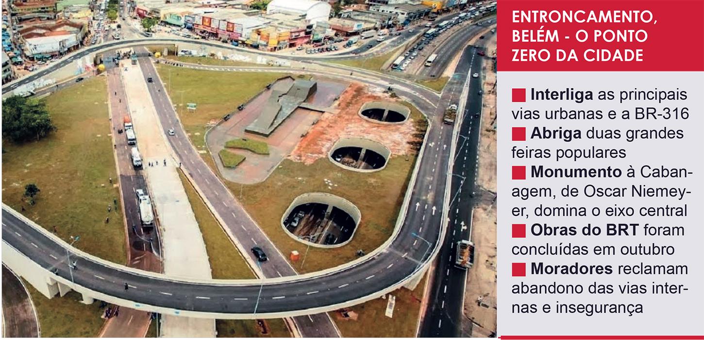 O Entroncamento, símbolo da Belém que não chegou à COP, é uma ironia em concreto. A poucos metros dali está o Monumento à Cabanagem, obra de Oscar Niemeyer erguida em homenagem à revolta popular do Século XIX. No entorno da escultura que celebra o povo, o próprio povo sobrevive entre gambiarras e sujeira.
